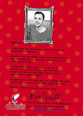 When Mr and Mrs Shinyshoes set off for work, Claude decides what adventure he wants to have that day. Today he and Sir Bobblysock go to the city for the very first time. They have tea in a cafe, go shopping and visit a museum. It is all very normal until ... Claude accidentally foils a robbery and becomes the local hero!