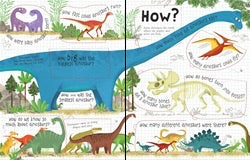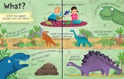 A colourful guide with over 60 flaps to lift to discover answers to questions young children might ask about dinosaurs. Provides simple and friendly answers to questions such as ?€?Why do dinosaurs have tricky names??€?, ?€?Could dinosaurs swim??€?, ?€?How big was the biggest dinosaur??€? and lots more. Includes a guide to some of the more difficult to pronounce dinosaur names. With Usborne Quicklinks to specially selected websites where children can find out more about dinosaurs.