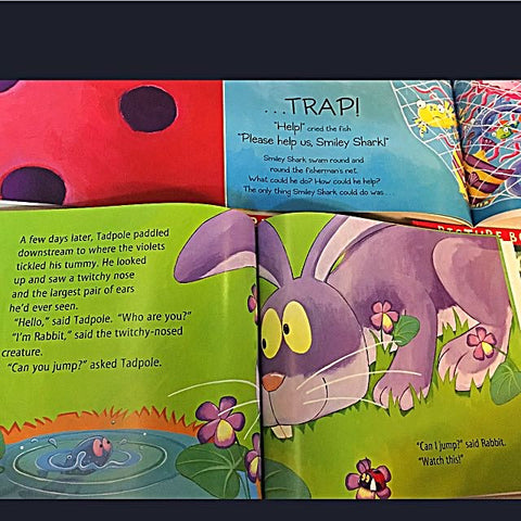 Throughout the 10 books, toddlers will be entertained as they meet a very greedy bee; a crunching, munching caterpillar; and a smiley shark. There are some books with bedtime themes that will help settle down children before they go to sleep.