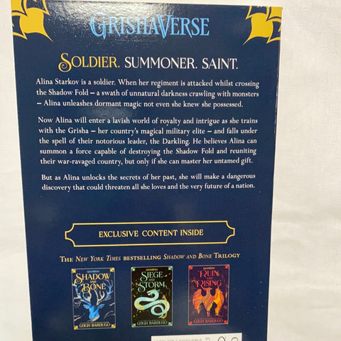 Enter the Grishaverse with Book One of the Shadow and Bone Trilogy by the number one New York Times-bestselling author of Six of Crows and Crooked Kingdom. Perfect for fans of Laini Taylor and Sarah J. Maas. Soldier. Summoner. Saint. Orphaned and expendable, Alina Starkov is a soldier who knows she may not survive her first trek across the Shadow Fold-a swath of unnatural darkness crawling with monsters. But when her regiment is attacked, Alina unleashes dormant magic not even she knew she possessed. Now Alina will enter a lavish world of royalty and intrigue as she trains with the Grisha, her country's magical military elite - and falls under the spell of their notorious leader, the Darkling. He believes Alina can summon a force capable of destroying the Shadow Fold and reuniting their war-ravaged country, but only if she can master her untamed gift. As the threat to the kingdom mounts and Alina unlocks the secrets of her past, she will make a dangerous discovery that could threaten all she loves and the very future of a nation. Welcome to Ravka . . . a world of science and superstition where nothing is what it seems. Praise for the Grishaverse: "Utterly, extremely bewitching." The Guardian "There's a level of emotional and historical sophistication within Bardugo's original epic fantasy that sets it apart." Vanity Fair "Unlike anything I've ever read." Veronica Roth, bestselling author of Divergent "This is a great choice for teenage fans of George R.R. Martin and J.R.R. Tolkien." RT Book Reviews Read all the books in the Grishaverse! The Shadow and Bone Trilogy (previously published as The Grisha Trilogy) Shadow and Bone Siege and Storm Ruin and Rising The Six of Crows Duology Six of Crows Crooked Kingdom The Language of Thorns: Midnight Tales and Dangerous Magic